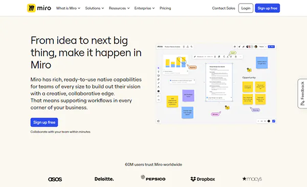 Overall, Miro is a powerful tool for visual collaboration, enabling teams to work together more effectively, generate new ideas, and complete projects efficiently. Its user-friendly interface and range of features make it a valuable resource for any team looking to enhance their productivity and creativity.
