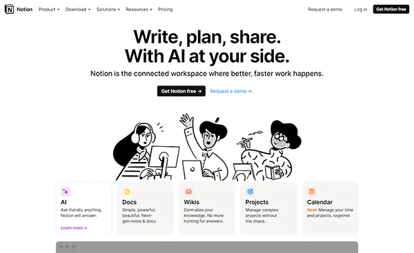 Notion is a versatile tool that helps in managing projects, tasks, and wikis. It allows you to keep all your work in one place, improving team productivity and collaboration. Notion offers a wide range of features, including note-taking, task management, document sharing, and database creation. It also supports integration with other popular tools such as Google Drive, Trello, and GitHub, making it a highly adaptable and customizable platform.